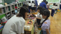 1年生生活科の学習の一つとして「シャボン玉遊び」を行いました。大きなシャボン玉に挑戦したり、小さなシャボン玉をたくさん作ることに挑戦したりと、いろいろと工夫しながら取り組んでいました。