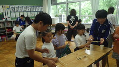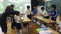 「1年生と夏祭りをしよう」と6年生が企画し、様々な遊びを考えてくれました。