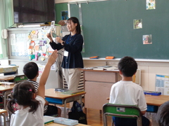 1,2年生に向け、ボランティアの方による読み聞かせを行いました。