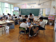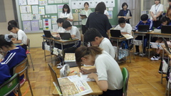話し合い活動をおこなったり、タブレットを活用したりしながら、学びを深めていました。