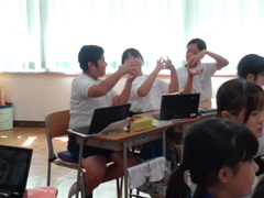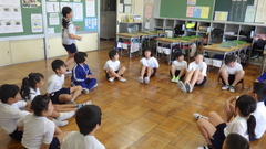とても暑い日でしたので、今日は校庭での活動を控え、教室で楽しみました。