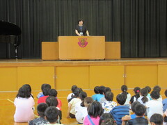 2学期始業式を行いました。校長先生から児童の皆さんに「2学期頑張ってほしいこと ①目標を決めて取り組もう ②友達と協力しよう ③挑戦する気持ちを大切にしよう」についてお話しがありました。9月の生活目標「自分から先に 笑顔で あいさつをしよう」についてのお話しもありました。長い2学期です。健康に気をつけて毎日、元気に過ごしましょう。