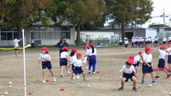 体力向上をめざし、ローテーション運動に取り組んでいます。