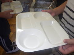 2学期、給食スタートです。2学期から食器が新しくなりました。