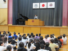 式 後は、たくさんのお友達の表彰がありました。最後に、担当の先生から「冬休みの過ごし方」についてお話がありました。すべての児童が真剣にきいていたので、きっと楽しく、思い出に残る冬休みになることでしょう。