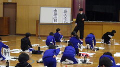 林 祥雲先生に書き初め指導をお願いしました。一文字ずつ書き方のポイントを御指導いただき、子供たちも真剣に練習に取り組みました。