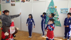 クリスマスが近いということで、ALTの先生がサンタクロースとトナカイになって、外国語活動を行いました。