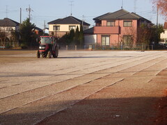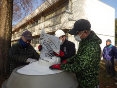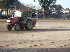 冬の積雪に備えて、地域の方のお力をお借りして、校庭に塩カルを撒きました。動噴を用いて、一気に撒いてくださいました。ありがとうございました。