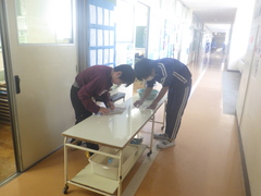 委員会活動を行いました。放送委員会では英語の放送に向けてALTのジェニ先生に発音を教えてもらいながら放送の練習を行っています。飼育緑化委員会では植物やウサギの世話、図書委員会は図書室の整備を行っていました。運動委員会はみんなが使う器具の点検やボールを磨いたりしていました。また、保健委員会では校内の衛生や給食についてのポスターを作り、健康に毎日を過ごすためにはどうしたらよいかと取り組んでいました。 どの委員会も新二小のみんなのために、頑張っています。