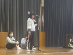 昼休み、特技発表会を行いました。ダンスや歌唱、竹馬、声まね、ギター演奏など、自分の特技をみんなの前で発表してくれました。