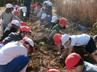 1学期に地域の方々が植えてくださったさつまいもの苗が大きく成長しました。今年の夏は、とても暑かったのでさつまいもができているか心配でしたが、1年生のみんながつるを片付けて、土を掘ったら土の中からたくさんさつまいもが出てきました。1年生は、大喜びでした。収穫したさつまいもは、1年生で分けて家に持って帰りました。水やりや草取りでは、地域の方々にお世話になりました。ありがとうございました。