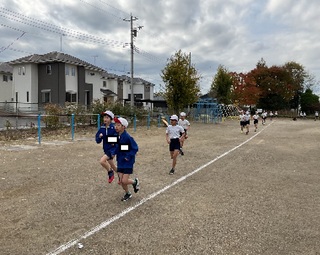今年度から校内持久走大会ではなく、授業の一環として持久走記録会を実施することになりました。どの学年も11月に入り、練習を重ね、11月の最終週に記録会を行うことにしました。記録会では、一人一人が自分の目標に向かって、力いっぱい走り切りました。