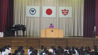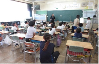 まず、体育館で始業式を行いました。校長から「2学期は、様々な学校行事がある中でしっかり目標をもち、『やればできる』という強い思いをもってがんばりましょう。」という話がありました。その後4年生の代表児童が「新学期に向けて」という作文を発表しました。気持ちを新たに2学期がスタートしました。