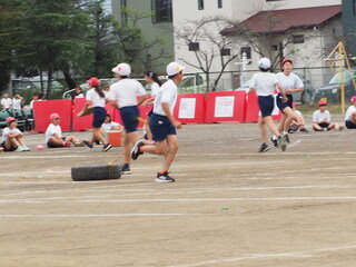 今日は、大玉送りの練習をしました。1~3年生は児童の間を転がして、4~6年生は児童の頭上を転がして大玉を早く台に乗せた方が勝ちです。本番当日、どちらが勝つかとても楽しみです。