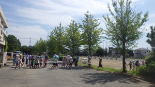 運動会全体練習を初めて行いました。整列や体操隊形の仕方、準備運動、応援の仕方などを練習しました。初めての全体練習でしたが、どの学年もしっかり話を聞いて、きびきびと動いていました。