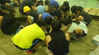 6年生が年末・年始に須影八幡神社に飾る竹灯籠づくりをしました。八幡様の総代の方々をゲストティーチャーとしてお迎えして、竹に穴を開けて、模様を作っていく作業を教えていただきました。灯りをともした際にさらに素敵な竹灯籠になるのが楽しみです。