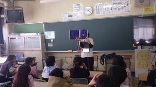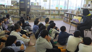 読書タイムは、先生方による読み聞かせでした。子供たちに読み聞かせを行う先生はヒミツでした。普段あまりかかわらない先生方に本を読んでもらっている子供たちは、真剣な眼差しで話を聞いていました。