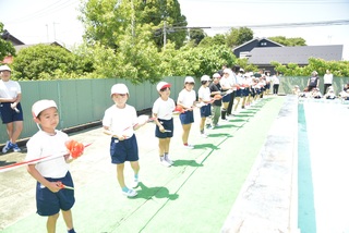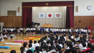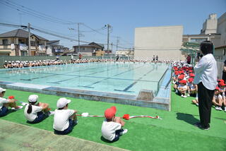 いよいよプールの季節がやってきました。久しぶりにプールサイドでプール開きを行いました。5月の終わりに3年生以上がプール掃除をしてくれたので、とてもきれいなプールになりました。約束を守り、安全に気を付けて楽しい水泳学習を行うことを全校のみんなで確認しました。