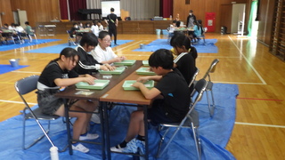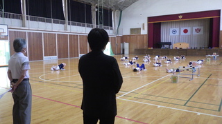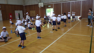 雨のため延期になっていた新体力テストを実施しました。校庭では、50m走とボール投げをしました。体育館では、反復横跳びや立ち幅跳び、上体起こしをしました。今までの練習の成果が表れるようにがんばっていました。