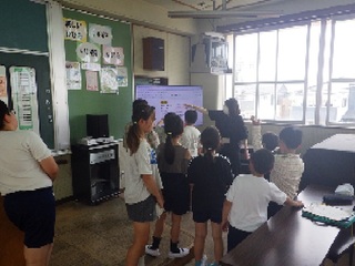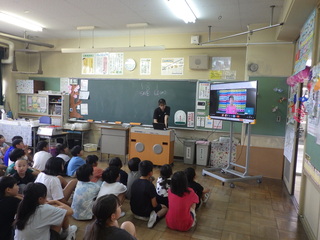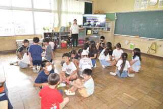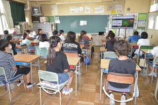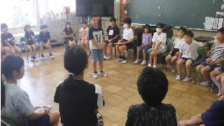 1学期の終業式は、暑さによる児童の健康を考え、オンラインで行いました。校長式辞や3年生の代表児童から1学期を振り返っての作文発表などがありました。明日から夏休みに入りますが、児童全員が約束を守って安全で楽しい生活を送り、2学期の始業式には元気に登校するのを楽しみにしています。