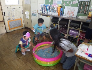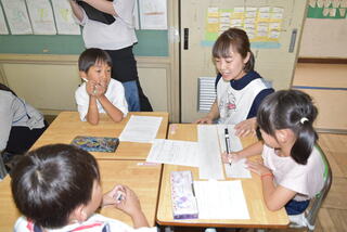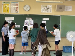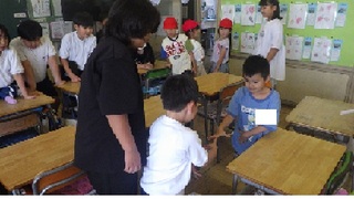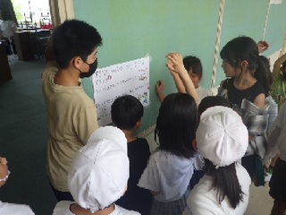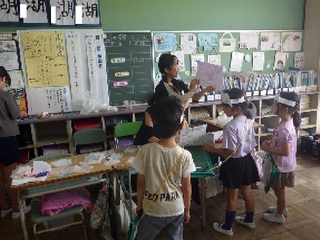 6年生が夏祭りを計画し、1年生を招待しました。6年生は、魚つりや立体めいろ、おめん屋など1年生が楽しめるいろいろな出店を用意しました。6年生が1年生にやさしく接している姿、1年生が笑顔いっぱいで楽しんでいる姿などをたくさん見ることができました。