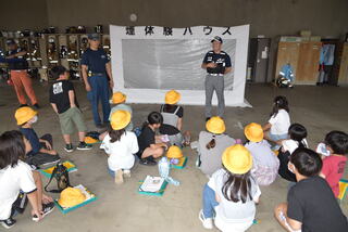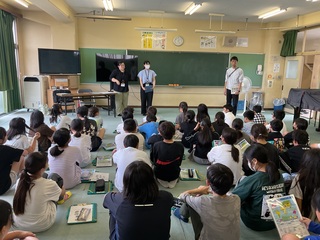 東武鉄道に勤務するたくさんの方が来校され、2年生が駅や鉄道、踏切のことについて教えていただきました。まず、電車の乗り方や鉄道で働く人のお仕事の紹介などの話を聞きました。その後ブースに分かれて、運転台を使って運転体験をしたり、列車を非常停止ボタンで止める体験などをしたりしました。また、実際に仕事で使用している道具に触れる体験も行いました。