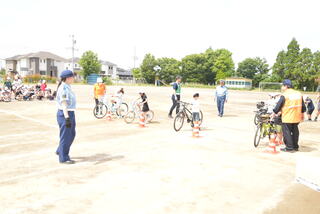 羽生警察署や交通安全母の会の方々、PTAの方々に御来校いただき、交通ルールや正しい歩行、正しい自転車の乗り方を学び、進んで交通安全を心がけようとする態度を身に付けるために、交通安全教室を実施しました。校庭で1・2年生は正しい横断の仕方を、3・4年生は自転車の点検の仕方や自転車の乗り方を教えていただきました。マルチルームで5・6年生は自転車の乗り方のお話をしていただきました。