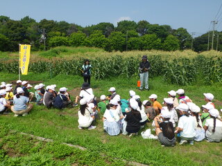 今年度もほくさい農業協同組合の方々の御厚意で、2年生がとうもろこしの収穫体験をすることができました。学校から15分ほど歩いていくと、とうもろこし畑がありました。2年生の身長よりはるかに背の高いとうもろこし畑が広がっていました。2年生は、大喜びでとうもろこしを収穫しました。収穫したとうもろこしは、お家へのおみやげに持って帰りました。