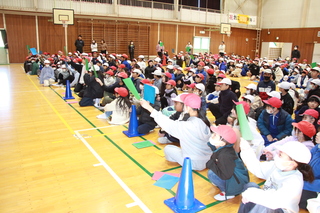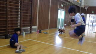 1年生、3年生、4年生、6年生の児童がなわとび検定会を行いました。どの学年もこれまで、学校や家で練習してきた成果を発揮していました。その中で1年生は、6年生に「すごいね」「がんばれ」と応援されながら、数を数えてもらっていました。体調不良が多かった5年生がなわとび検定会を延期したため、5年生に数を数えてもらう予定だった2年生も延期になりました。