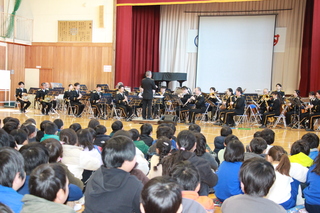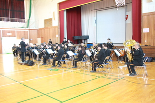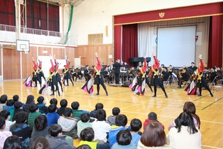 埼玉県警察音楽隊が須影小学校に来てくださいました。クラッシックの名曲だけでなく、となりのトトロの挿入歌「さんぽ」や名探偵「コナン」の主題歌、ミセスグリーンアップル「ライラック」などを演奏してくださいました。そして、須影小学校校歌を県警音楽隊の演奏に合わせてみんなで歌いました。途中から演奏に合わせて、カラーガード隊の旗の演技を見ました。フラッグを自由自在に操り、とてもかっこよかったです。