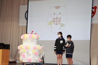 運営委員会が中心となって、須影小学校をもっと好きになったり須影小学校に感謝をしたりする気持ちをもとうというねらいで152周年を祝う会を実施しました。誕生日ケーキのお披露目をした後、縦割り班で楽しく須影小クイズを行いました。各学年の学校への思いを掲示し作成した誕生日ケーキは、昇降口に飾ってあります。