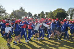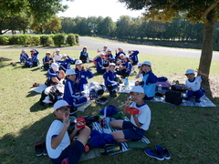 羽生水郷公園では、歩いた疲れも感じさせずに、縦割り班で遊んだり、お弁当を食べたりしました。