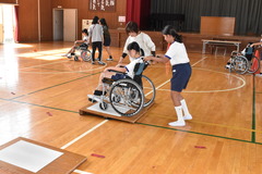 5年生が総合的な学習の時間で、車椅子などの体験を行いました。