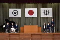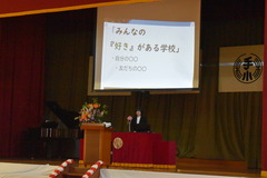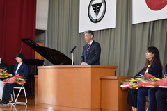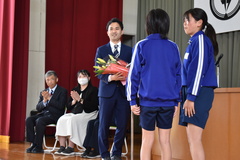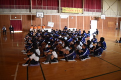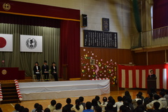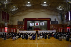 担任の先生の発表や、久しぶりに体育館で校歌を歌いました。