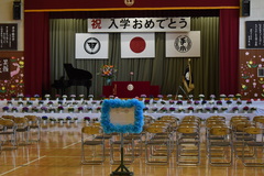 35名の1年生。緊張しながらも入場や名前の際には、返事ができました。