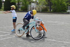 2時間目は3、4年生。自転車の乗り方や、ルールを学びました。