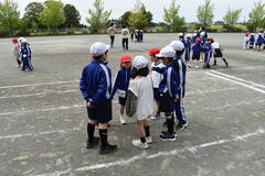 23日(木)に1年生と2年生が交流会を校庭で行いました。