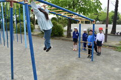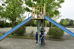 2年生は1年生の手をとり、校庭散策や遊具庭で遊びました。